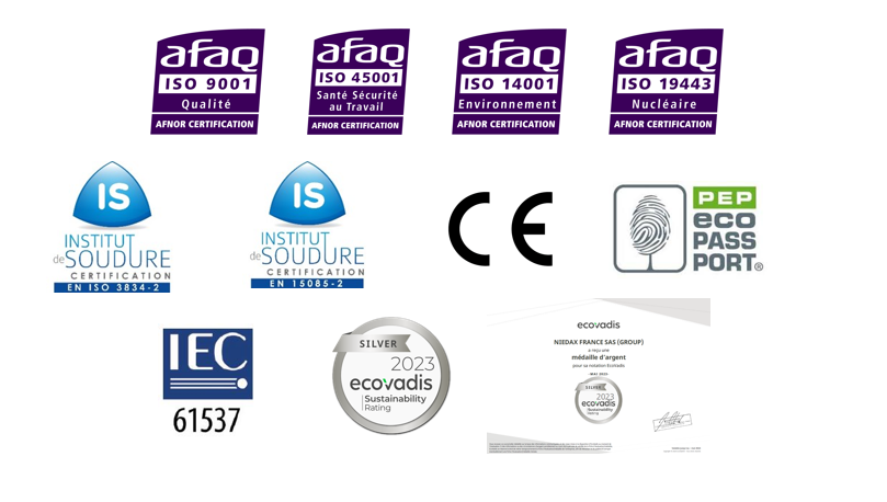 Scope: NIEDAX in France sites are ISO 9001: 2015, ISO 14001: 2015 and ISO 45001: 2018 certified for "the conception, manufacturing and sale of supporting systems for electrical wires, pipework and small associated equipment"